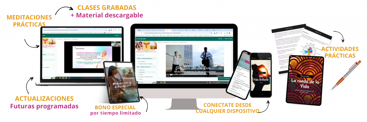 Tendremos encuentros sorpresas, actualizaciones, una comunidad en línea dentro de la escuela y descuentos especiales a programas 360 de Transformación Total.